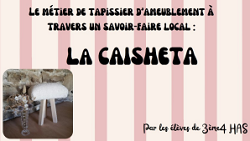 Dans le cadre du Parcours Avenir, les élèves de 3ème4 (groupe HAS) ont réalisé un projet autour du métier de tapissier d'ameublement. Une professionnelle est intervenue en classe à hauteur de 12h afin d'initier les élèves à ce métier. Ce projet a également été l'occasion d'illustrer le métier de tapissier décorateur à travers une tradition locale : la Caisheta. Les réalisations des élèves sont exposées et expliquées au CDI du collège jusqu'à la fin de l'année. L'objectif de cette exposition est de mettre en avant le travail particulièrement réussi des élèves, mais aussi, de permettre aux élèves des classes ordinaires de découvrir à leur tour un métier artisanal peu connu.